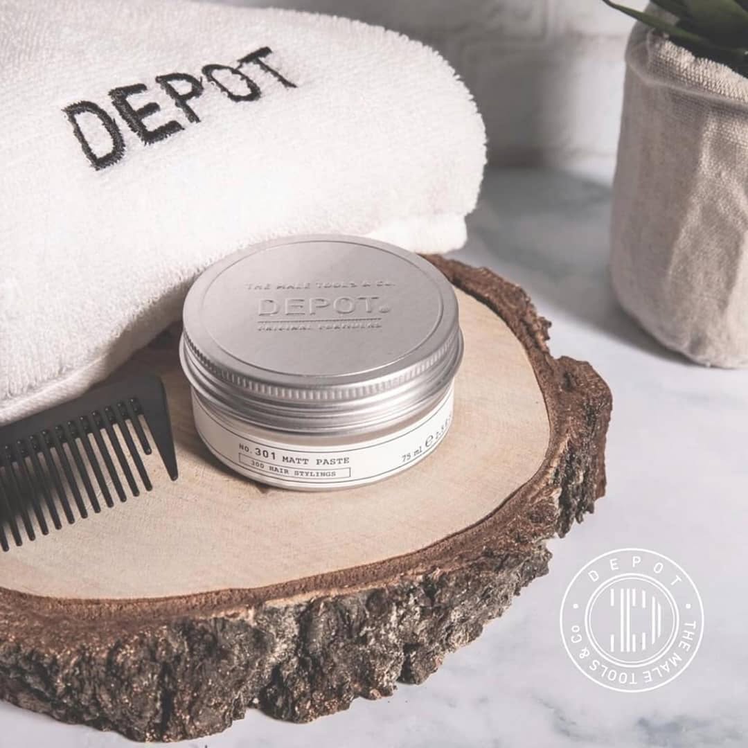 DEPOT No. 301 Matt Paste gir sterkt hold og en naturlig matt finish, ideell for definert styling uten glans. Kombiner med DEPOT No. 201 Refreshing Conditioner for et sunt grunnlag før styling.