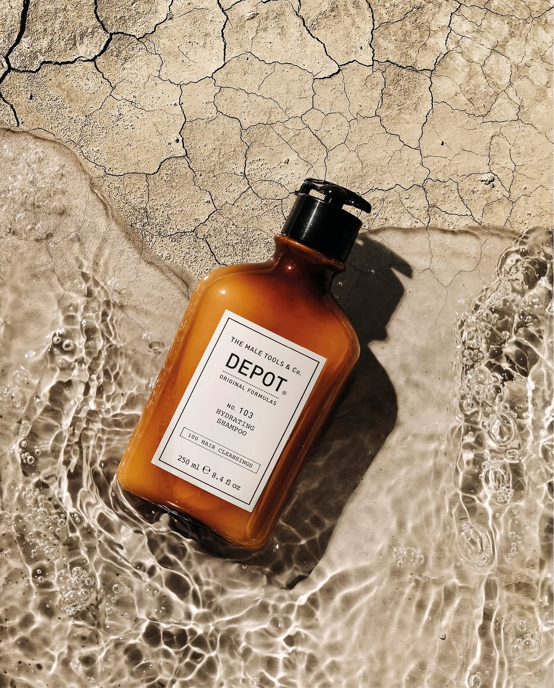 Designet for menn, utviklet av eksperter. DEPOT No. 103 Hydrating Shampoo er en fuktighetsgivende sjampo spesielt utviklet for tørt og skjørt hår. Den renser håret skånsomt, etterlater det mykt og velpleid, og er formulert med milde overflateaktive stoffer for en balansert rens. Kombiner med DEPOT No. 201 Refreshing Conditioner for et sunt grunnlag før styling.