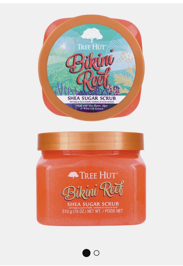 Shea Sugar Scrub Bikini Reef er en skånsom og næringsgivende sukkerskrubb til kroppen som gir en intensiv eksfoliering for en myk og glansfull hud. Sukkerkornene i skrubben eksfolierer varsomt døde hudceller og tørr hud, så huden bli myk og føyelig. Inneholder blant annet hvit nyperose som fukter, lindrer og beskytter sensitiv og irritert hud, alger som reduserer tørr hud og gjenoppretter elastisiteten, samt sheasmør som fukter i dybden, gir næring, gjør huden myk og fremmer elastisiteten. Skrubben er også beriket med naturlige oljer fra avokado, macadamiafrø, nattlys, søtmandel, hampfrø, kokosnøtt, aloe og fruktekstrakt. Den har en frisk duft av rosa sukker og hibiskus som tar sansene med på en tropisk ferie. Hvit nyperose og alger bidrar til å forbedre utseendet og følelsen av tørr hud. Den er vegansk og helt uten parabener og sulfater.